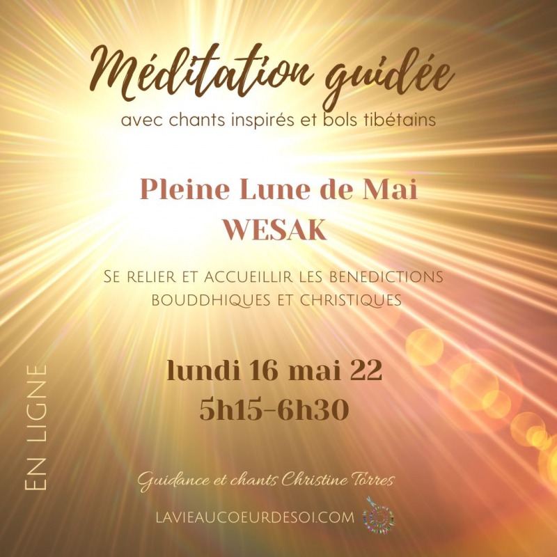 Les bouddhistes et les hindouistes fêtent depuis longtemps la naissance, l'éveil et la mort de Bouddha. Cette fête est célébrée dans de plus en plus de pays car c'est aussi un moment où se connecter à de hautes énergies. Il est dit que les énergies Bouddhiques et Christiques descendent sur la Terre. Un moment où vous pouvez vous ouvrir et baigner dans ces puissantes énergies pour les retransmettre ensuite. C'est ce que je vous propose lors de cette médiation. :