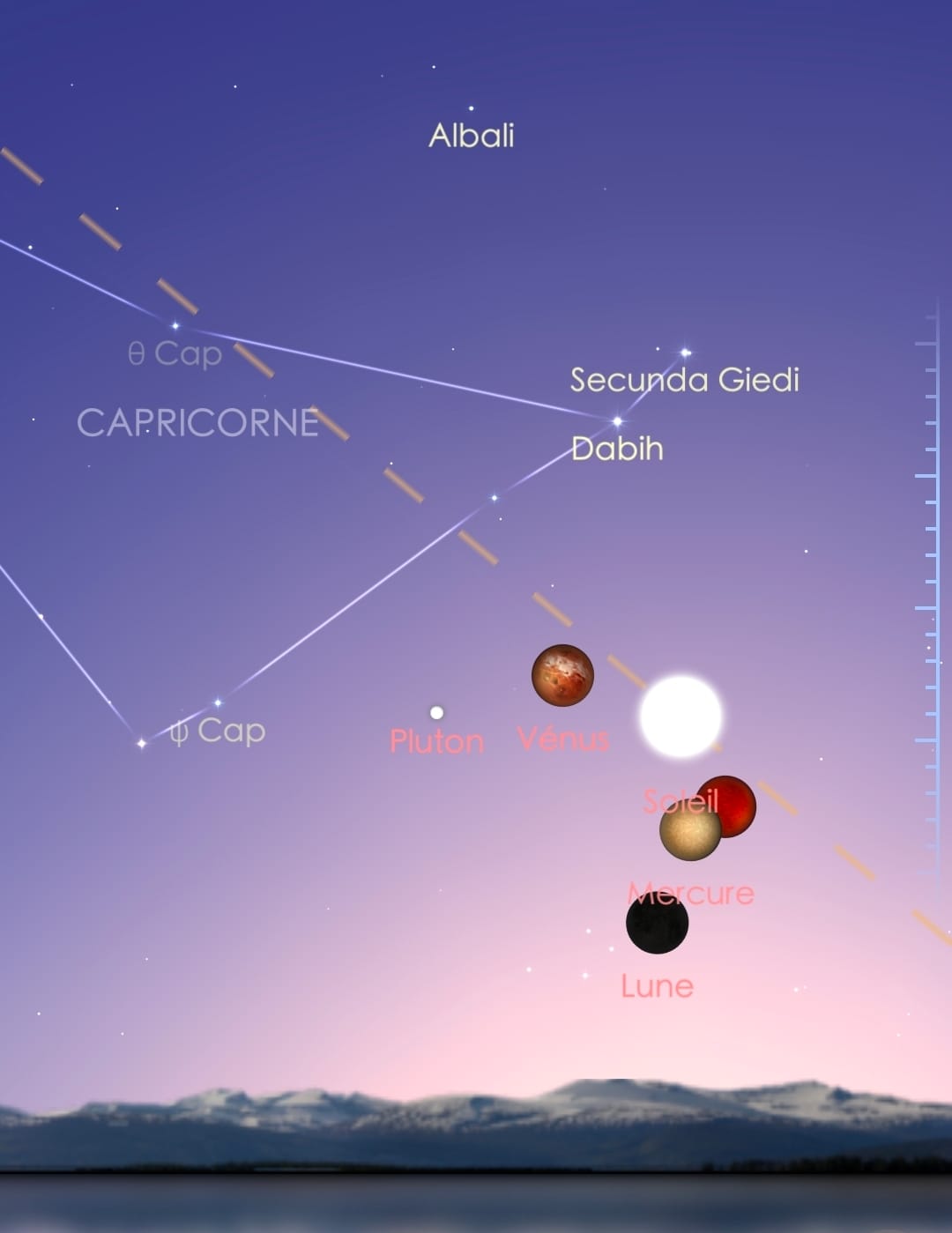 Pluton, Venus, Mercure, Mars seront autour de la Lune et du Soleil qui sont en conjonction à la Nouvelle Lune. Astrologiquement, ces astres entreront en résonance harmonique avec les planètes Uranus, Saturne , Neptune.