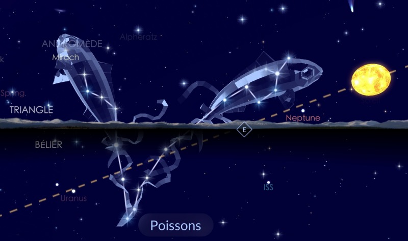 En astrologie, on dit qu'elle est sur l'axe Vierge - Poissons. La Lune est près de la constellation de la Vierge